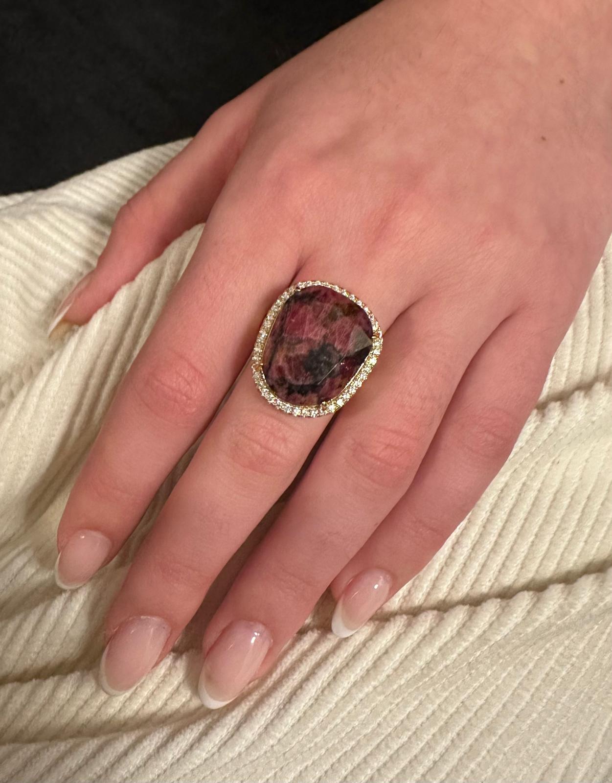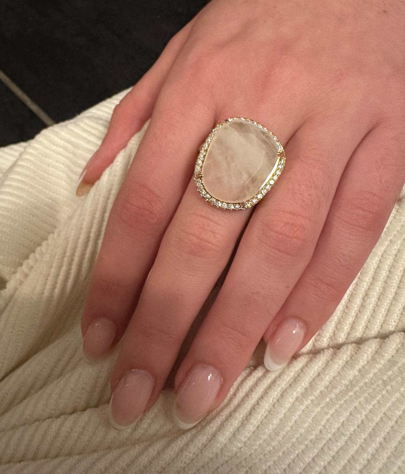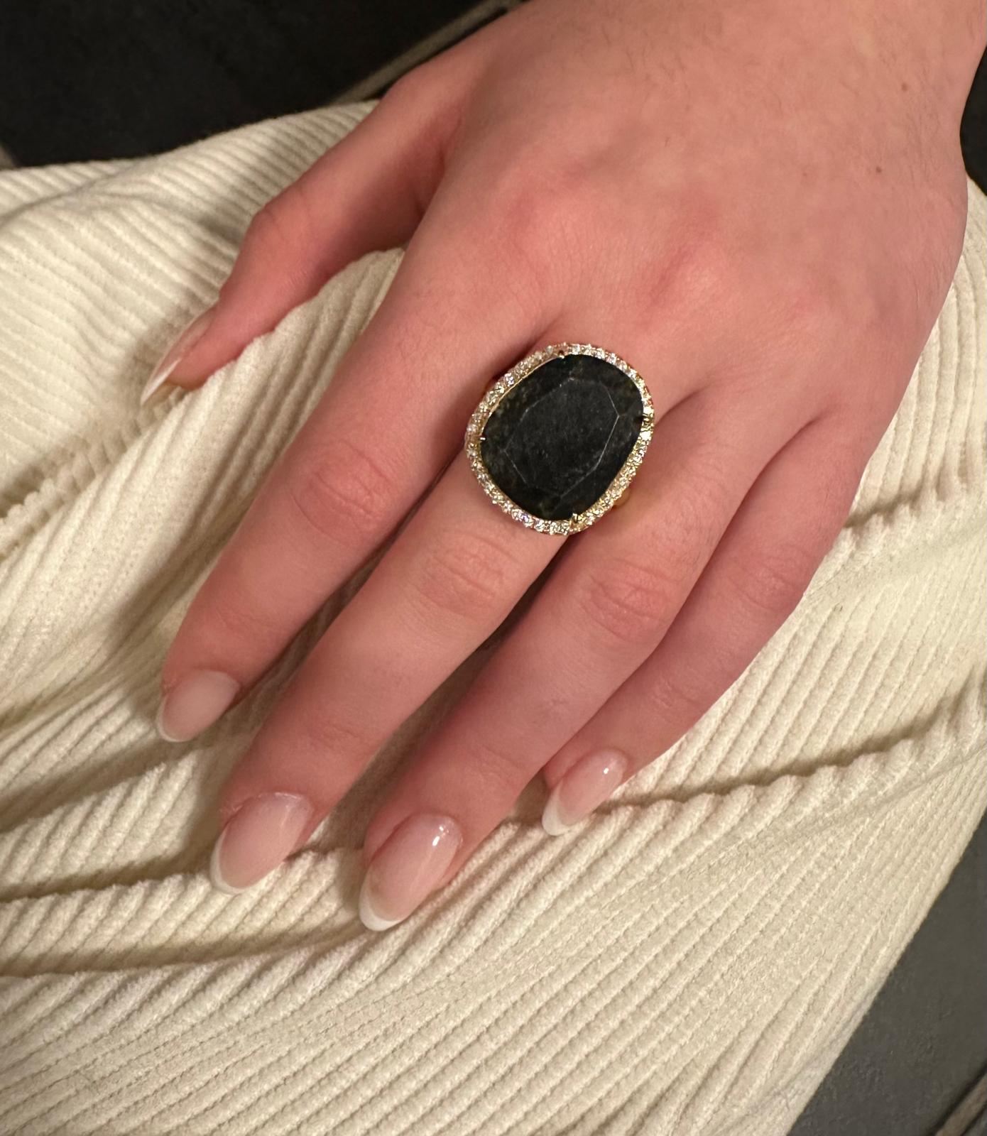 Bague en acier inoxydable réglable avec pierre semi précieuse