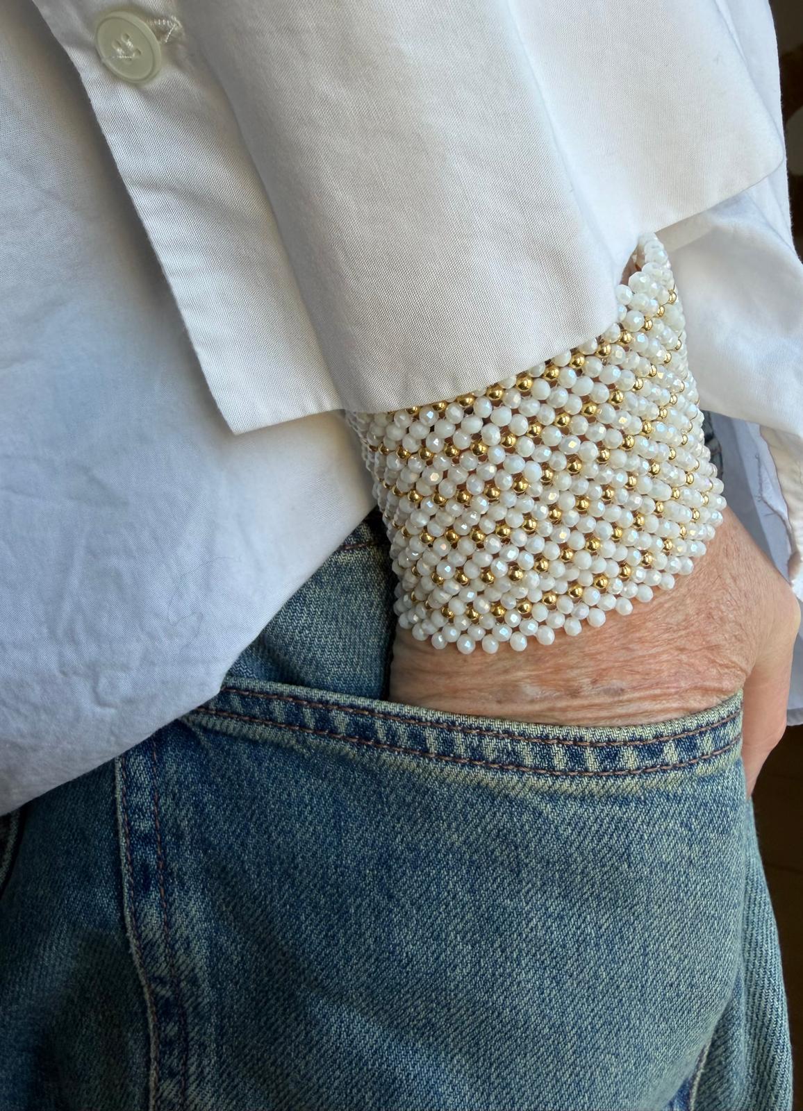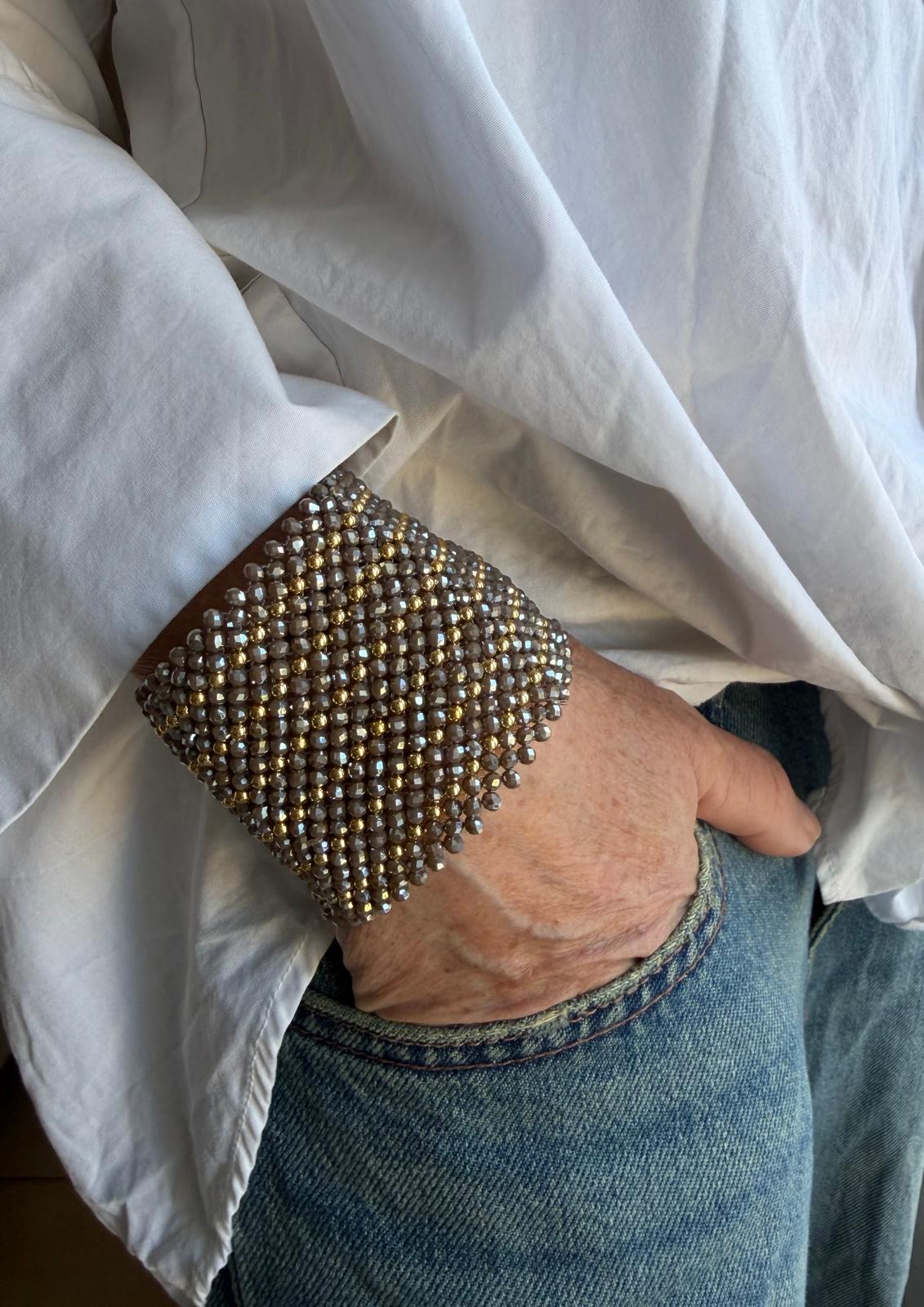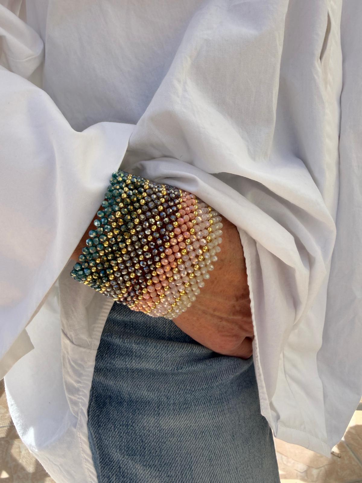 Bracelets manchette en perles facettées et perles en acier inoxydable