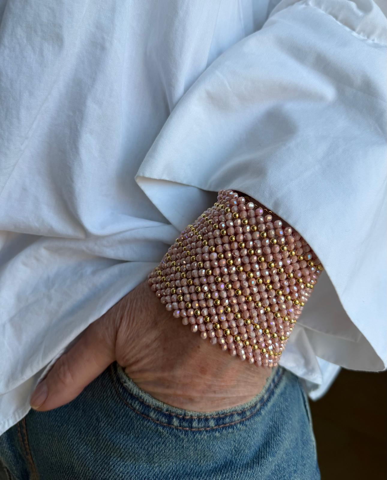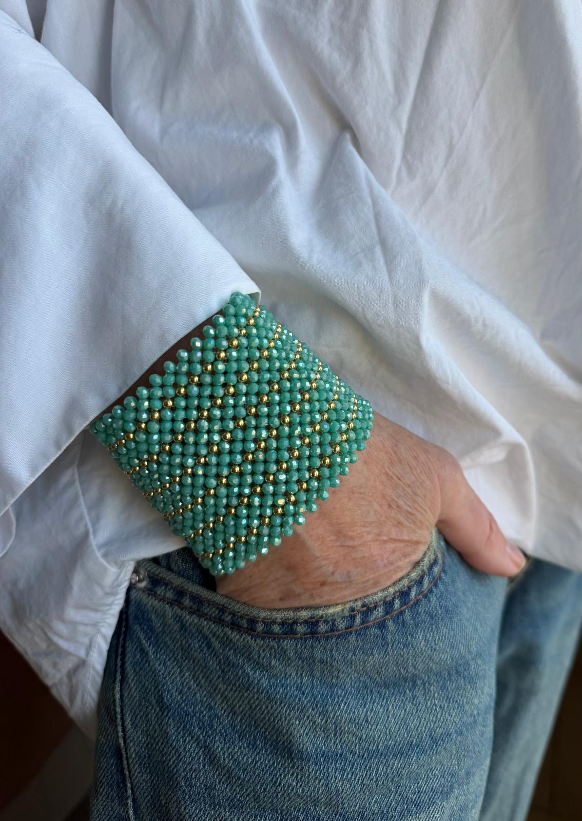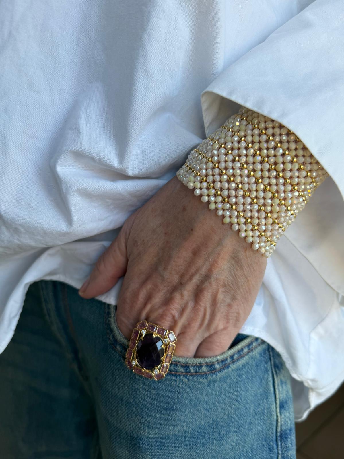 Bracelets manchette en perles facettées et perles en acier inoxydable