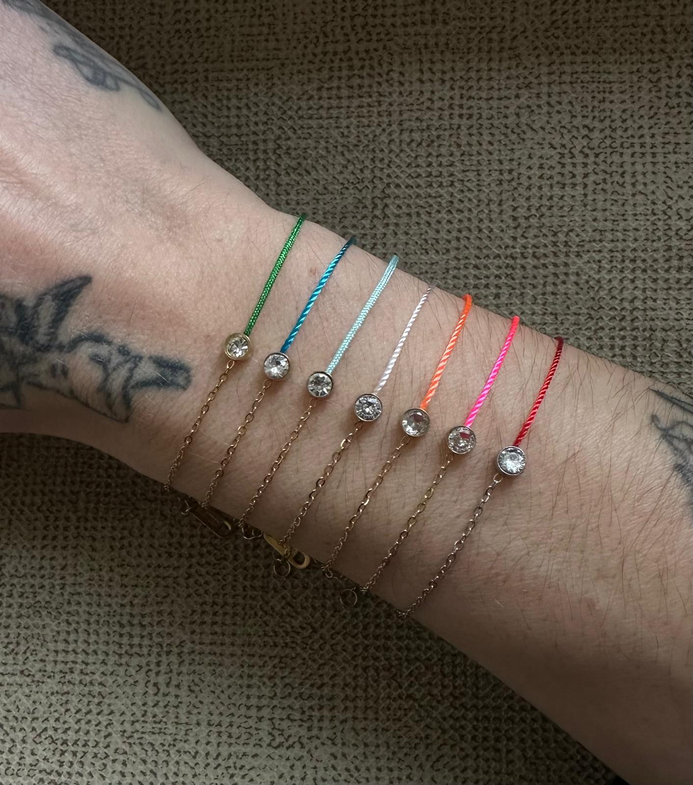 Bracelet chaine en acier inoxydable, cordon et mini zircon au centre