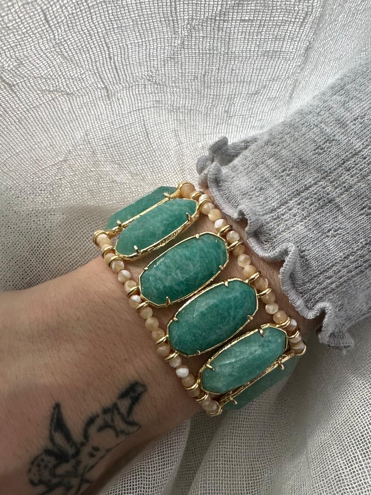 Bracelet pierres semi précieuses, perles semi précieuses et acier inoxydable
