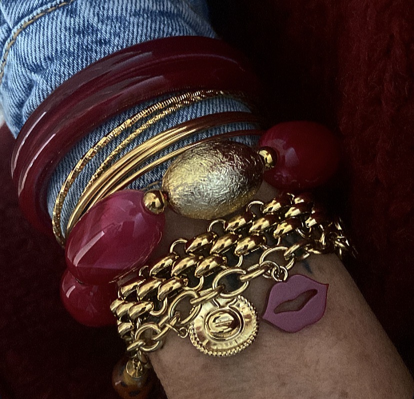 Bracelet big perles ovales mix acetate et acier inoxydable