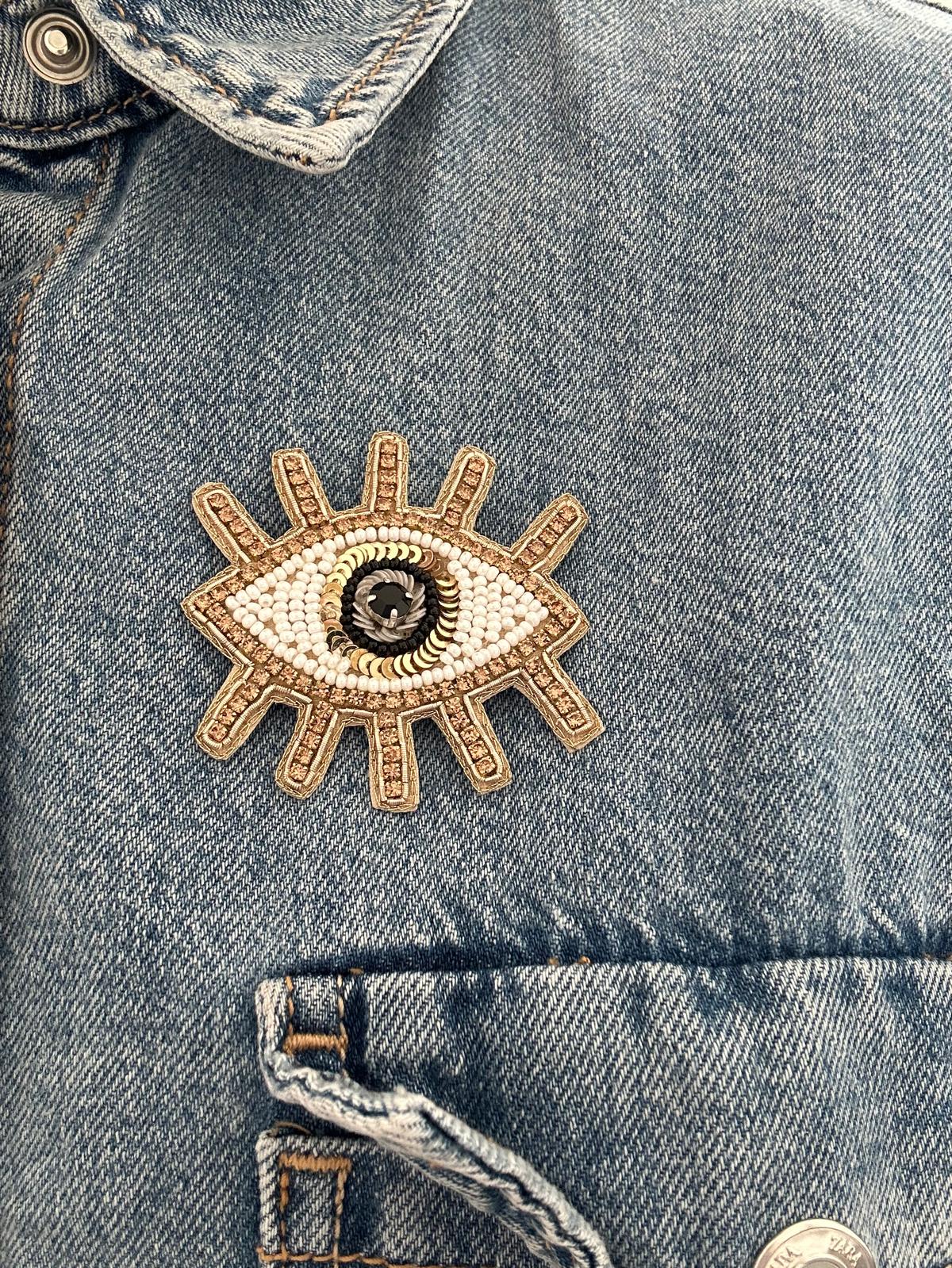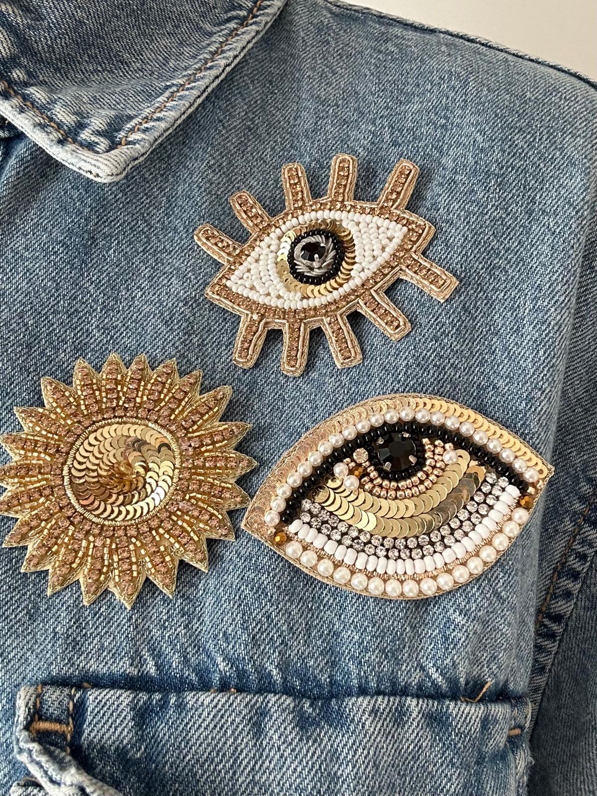 Broches simili cuir, strass, sequins et perles