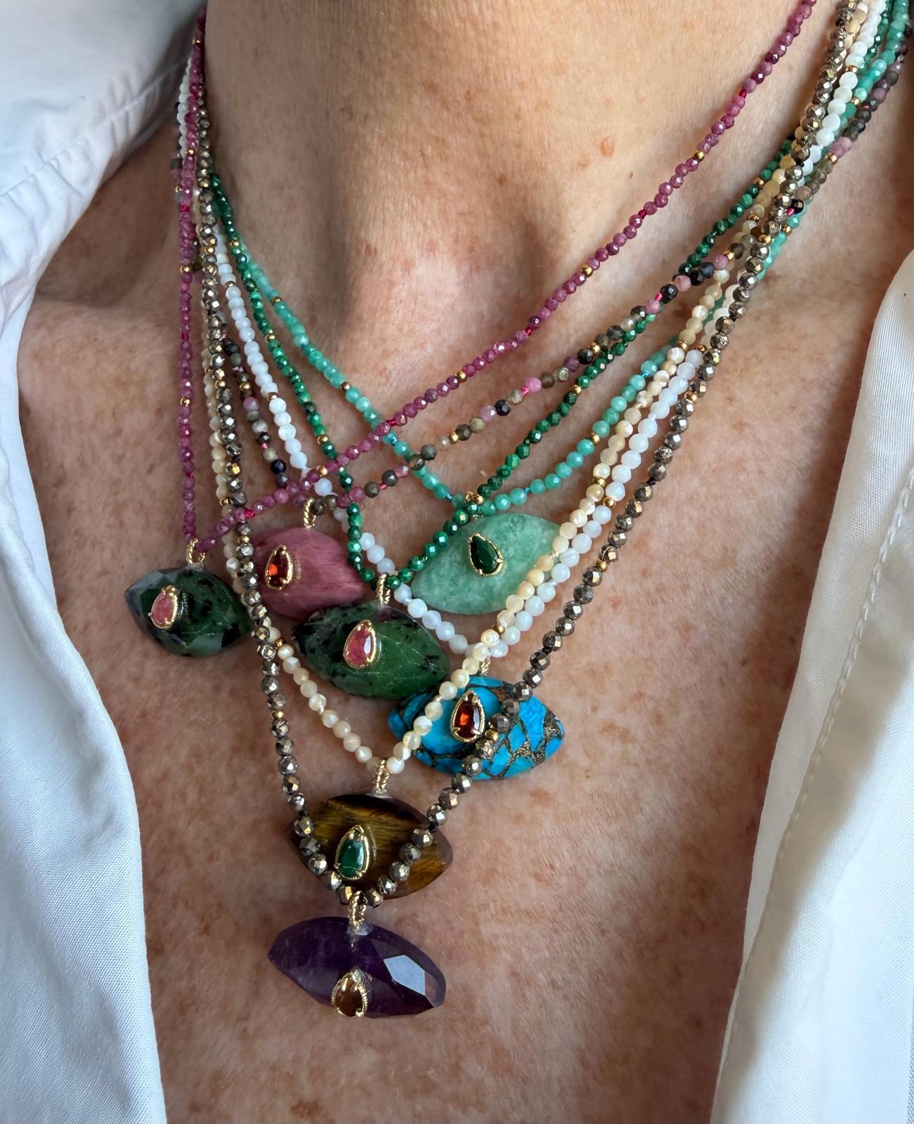 Colliers perles et pierres semi precieuses réglable avec une chainette d’extension