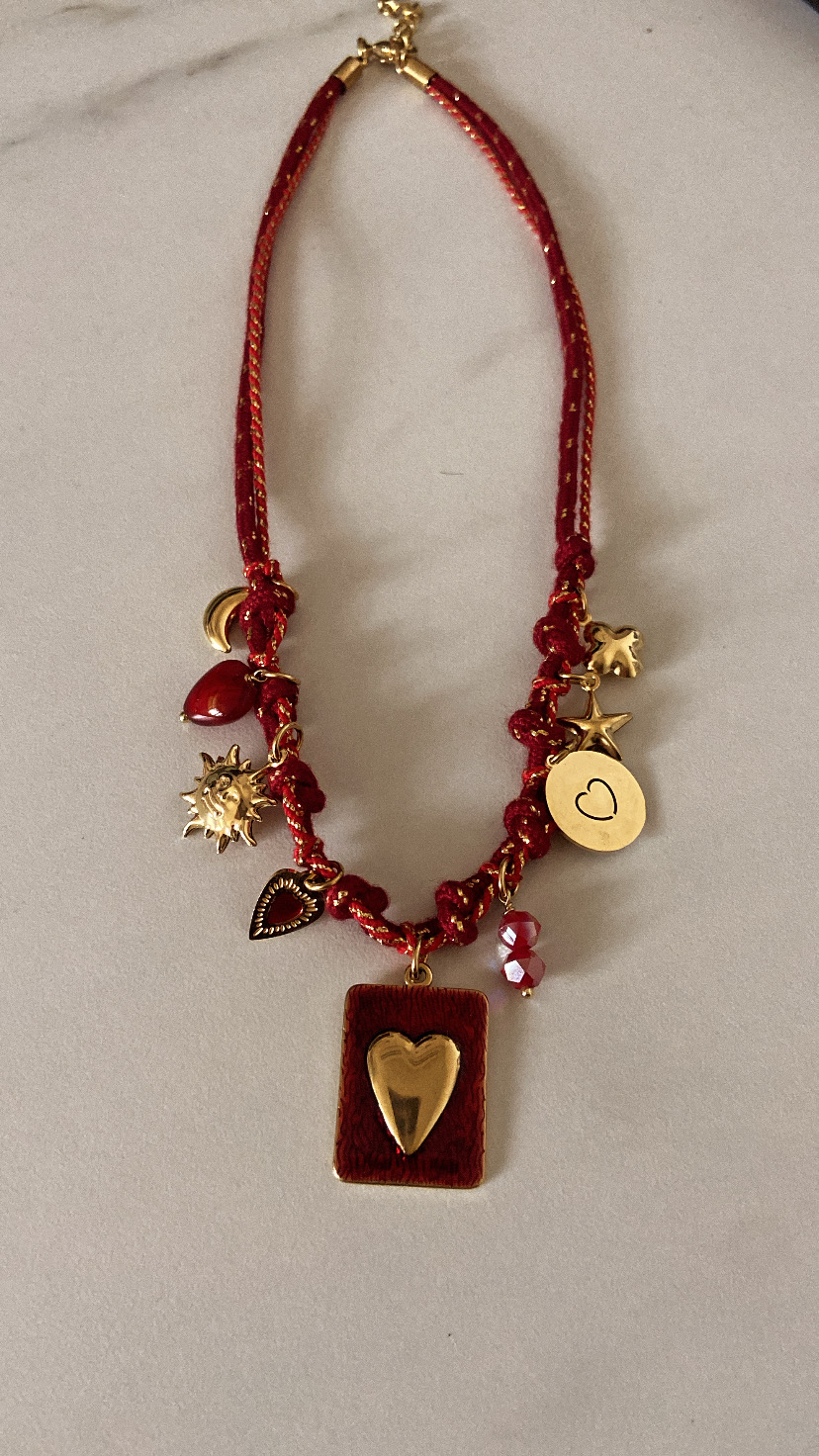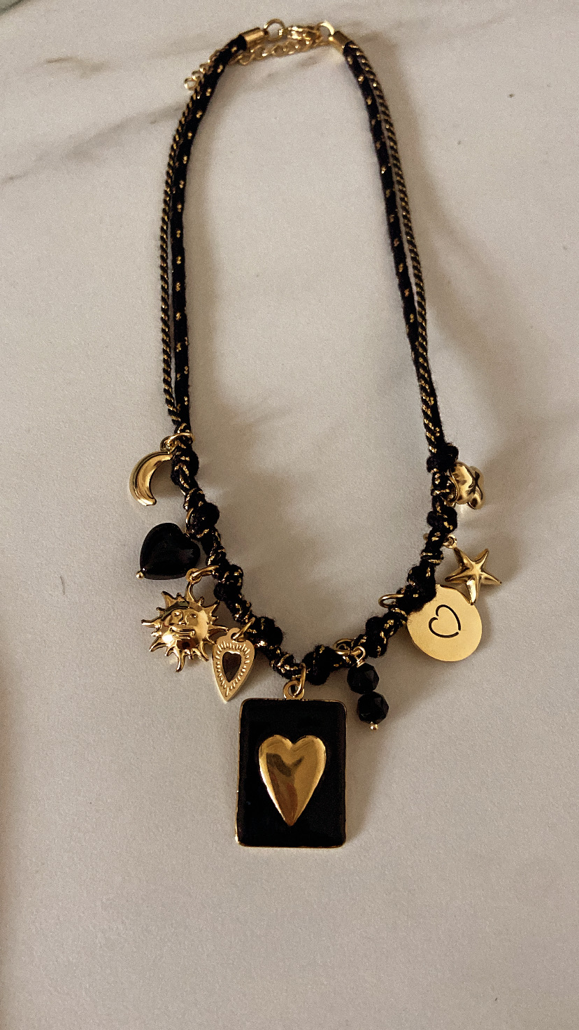 perles, coeurs, lune, étoile, coeur central en acier inoxydable émaillé