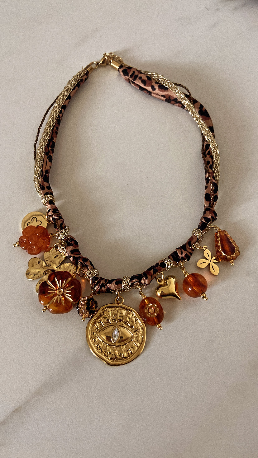 grigri dans les tons ambre, chocolat et doré