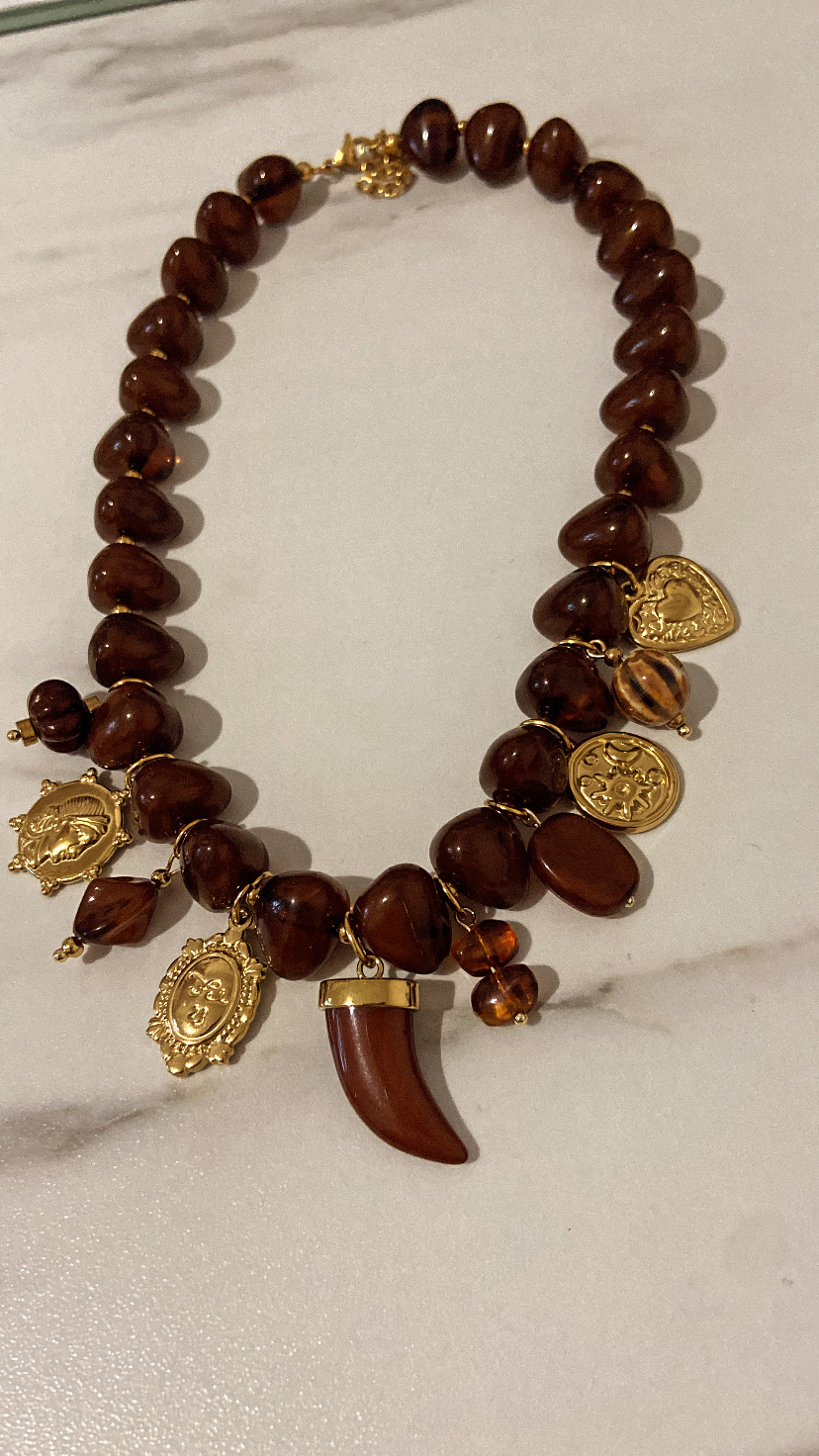 grigri dans les tons ambre, chocolat et doré