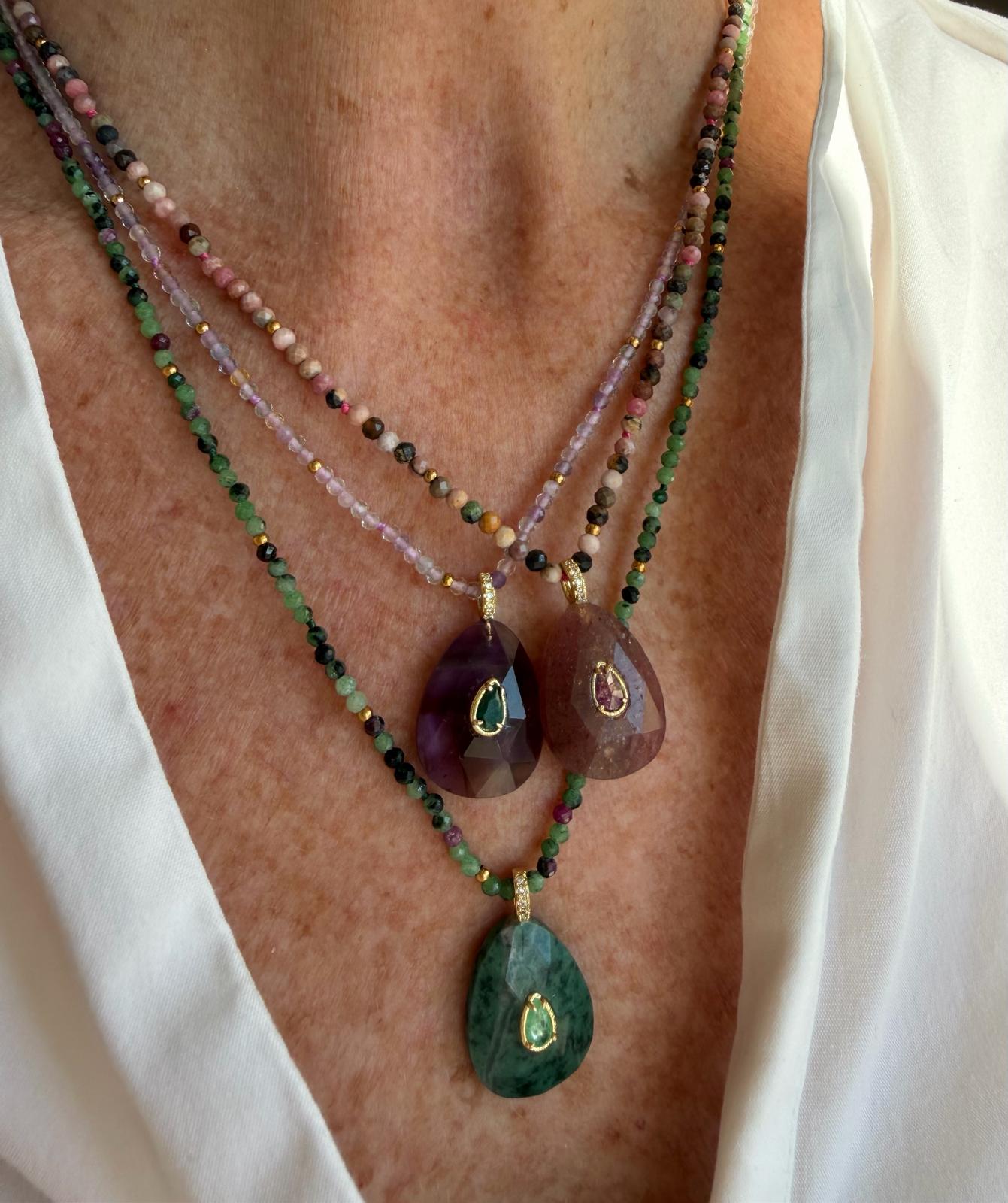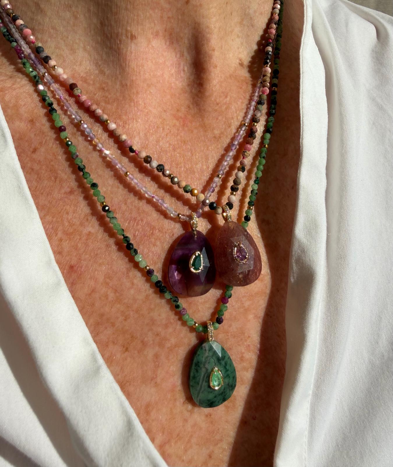 Colliers en perles et pierres semi précieuses