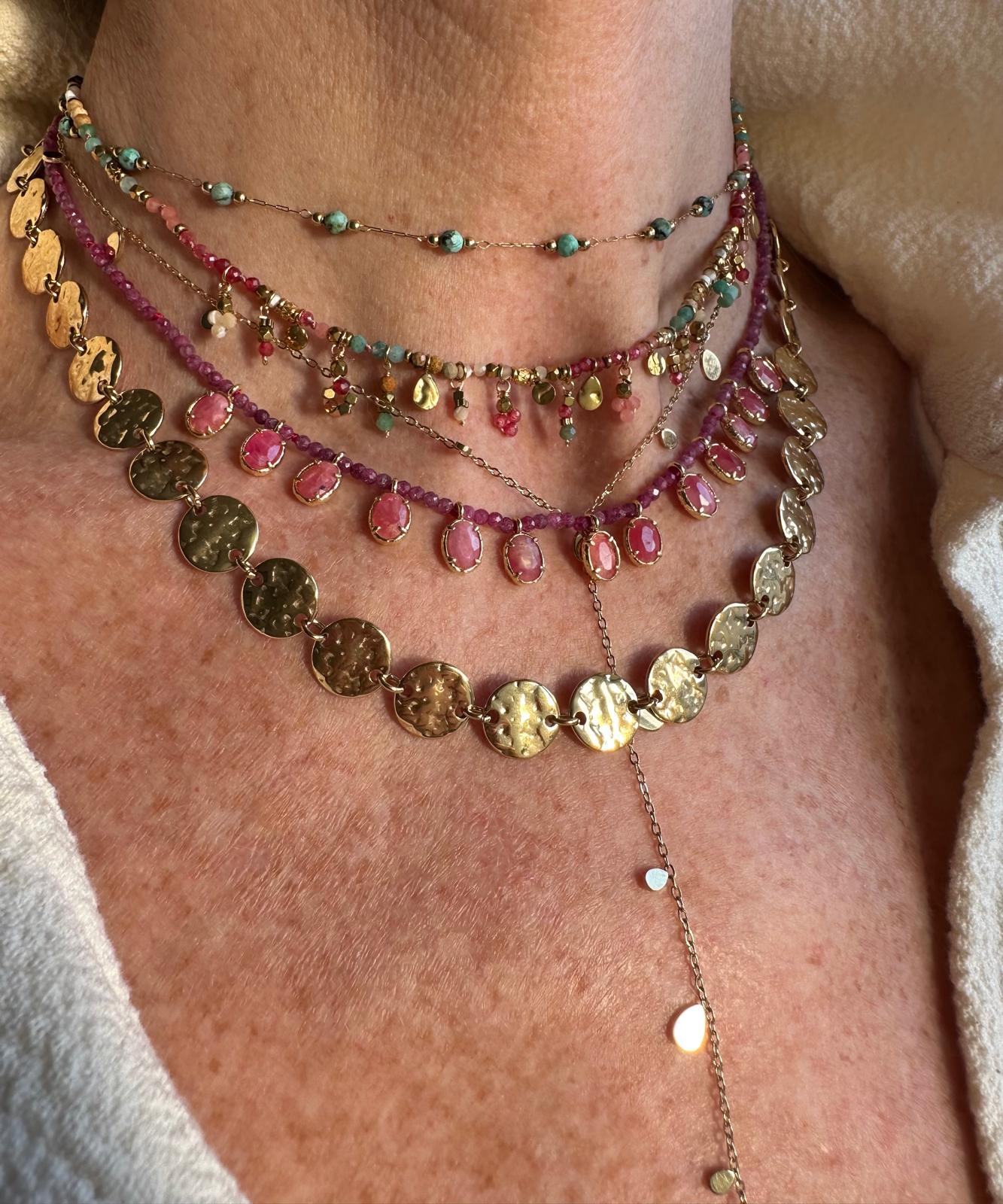 Composition de plusieurs colliers en perles semi précieuses, chaines en acier inoxydables