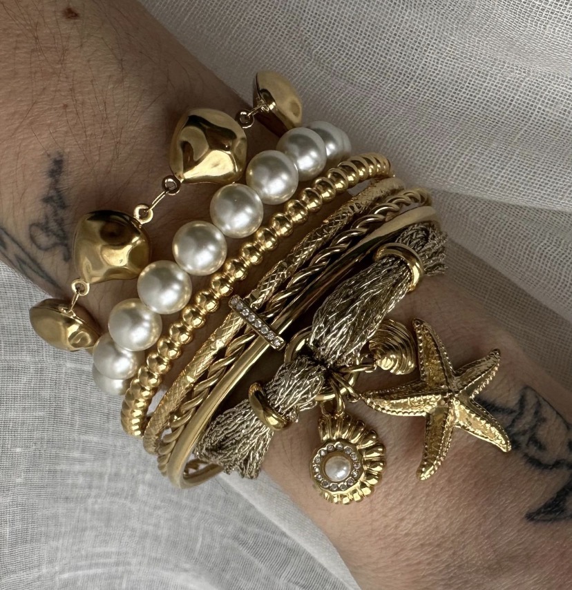 Composition de 5 bracelets mix d’acier inoxydable de perles et de lurex