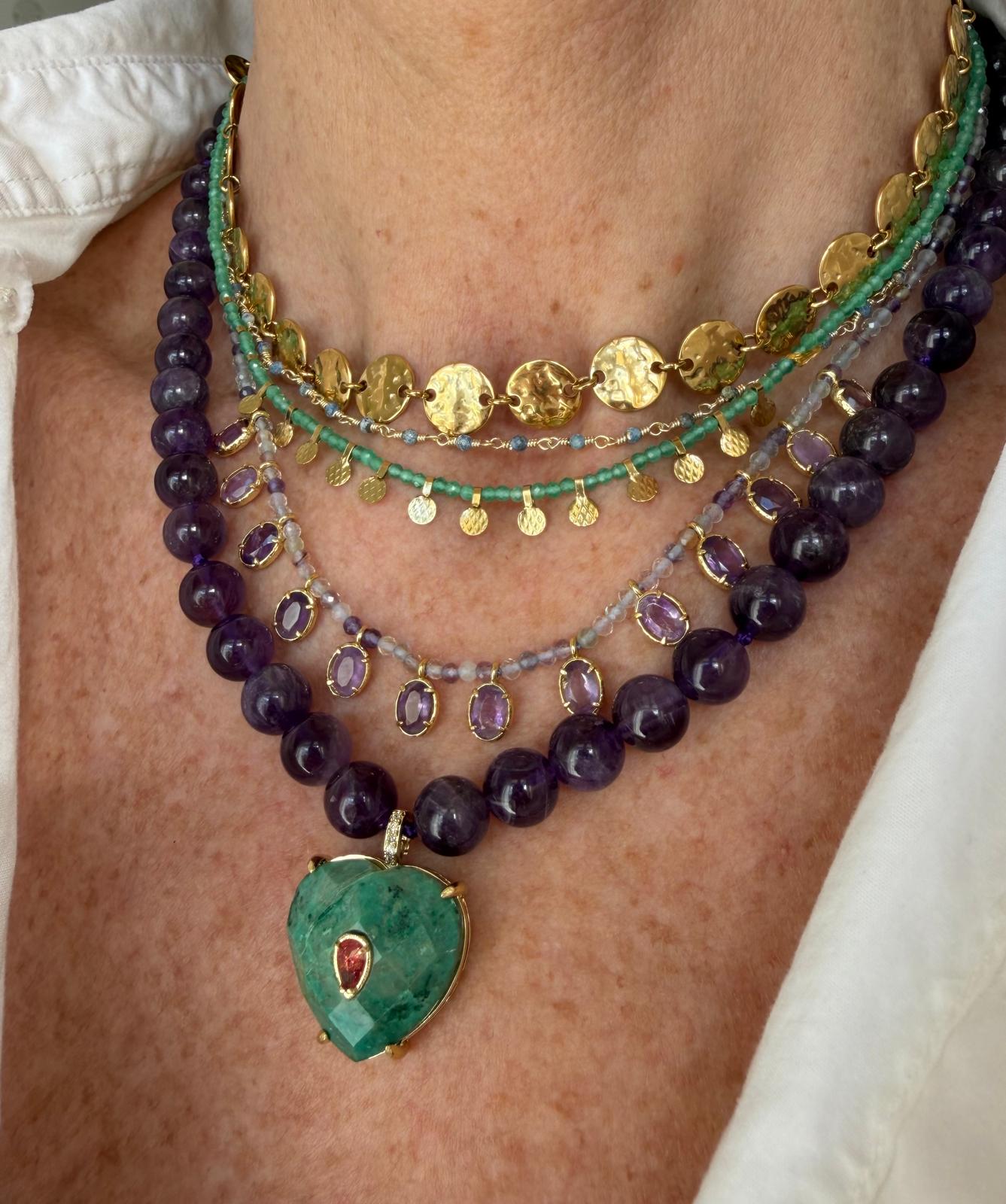 Composition de plusieurs colliers en acier inoxydable et perles semi précieuses