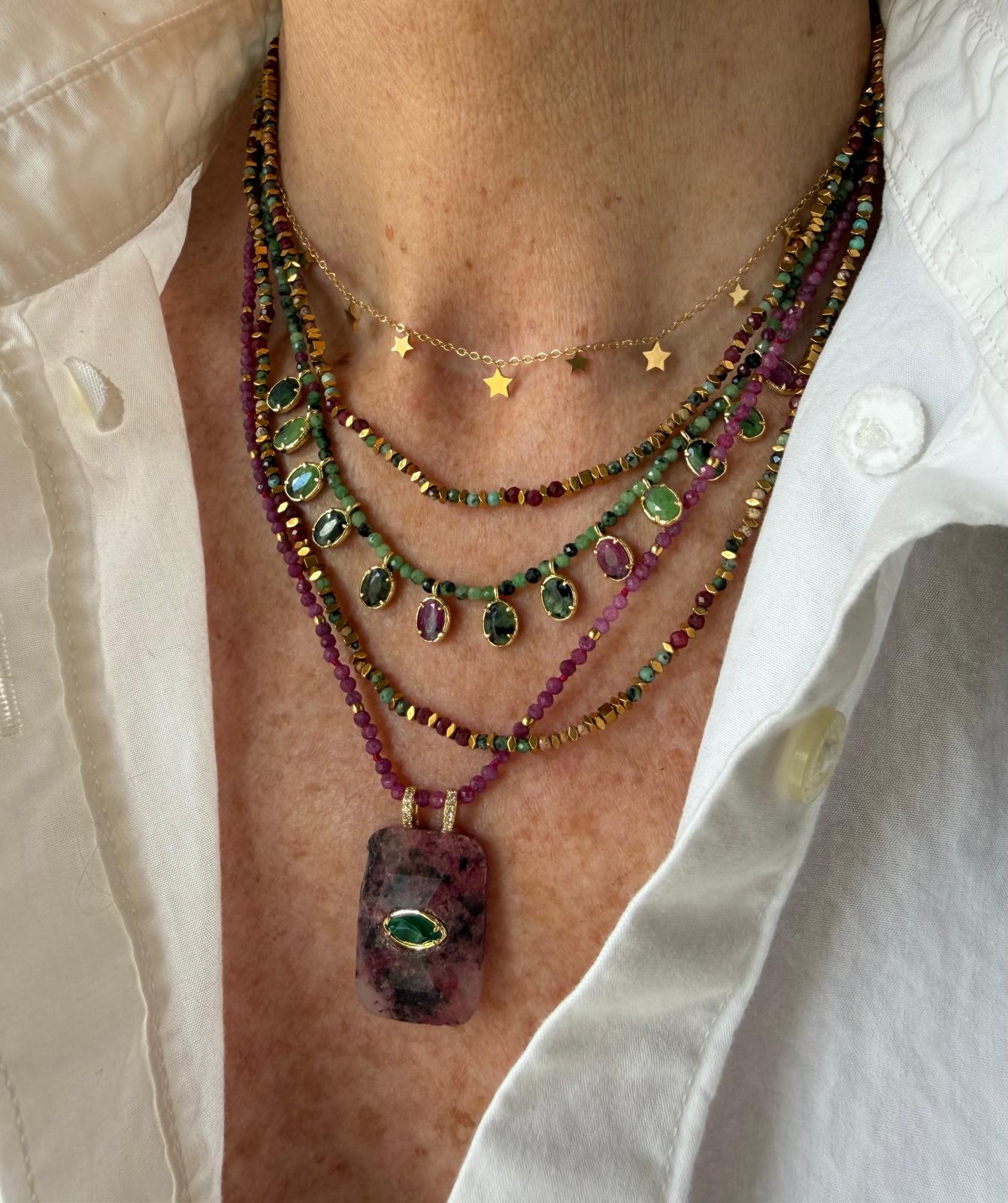 Composition de plusieurs colliers en acier inoxydable, perles et pierres semi précieuses