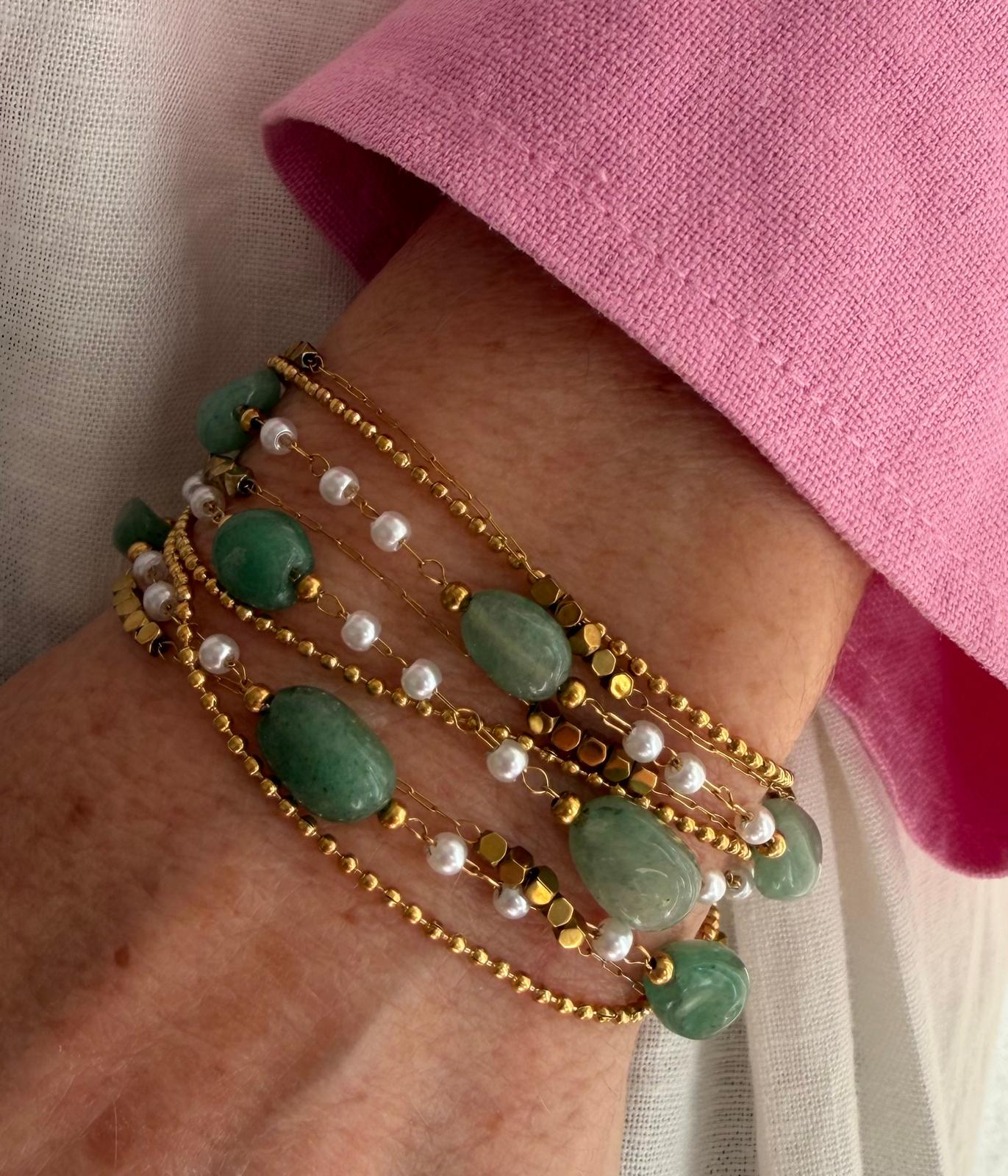Il se porte de deux façons, vous avez ainsi deux bijoux en un, en bracelet ou en collier.